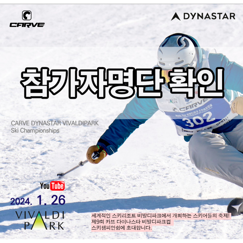 제9회 카브_다이나스타_비발디파크 스키챔피언쉽 출전자 확정 명단